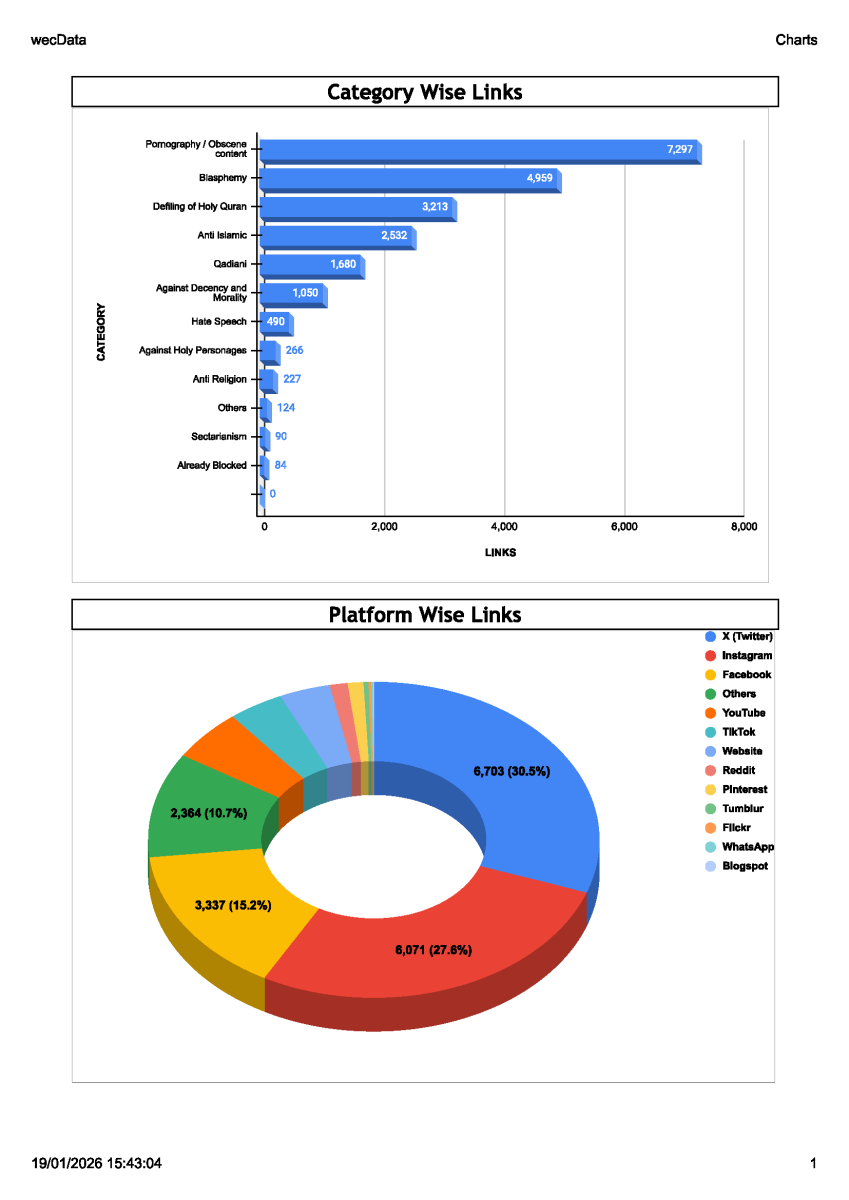 Ministry of Religious Affairs and Interfaith Harmony (MORA) is fully committed to take all necessary steps, within its purview, to report blasphemous content on social media. Since 2015, MORA has been providing strong assistance to Pakistan Telecommunication Authority by providing expert opinion on objectionable content (including blasphemous/Anti-Islamic/Sectarian/pornographic etc.) and by forwarding recommendations to PTA through e-portal for blockage / any other necessary action.