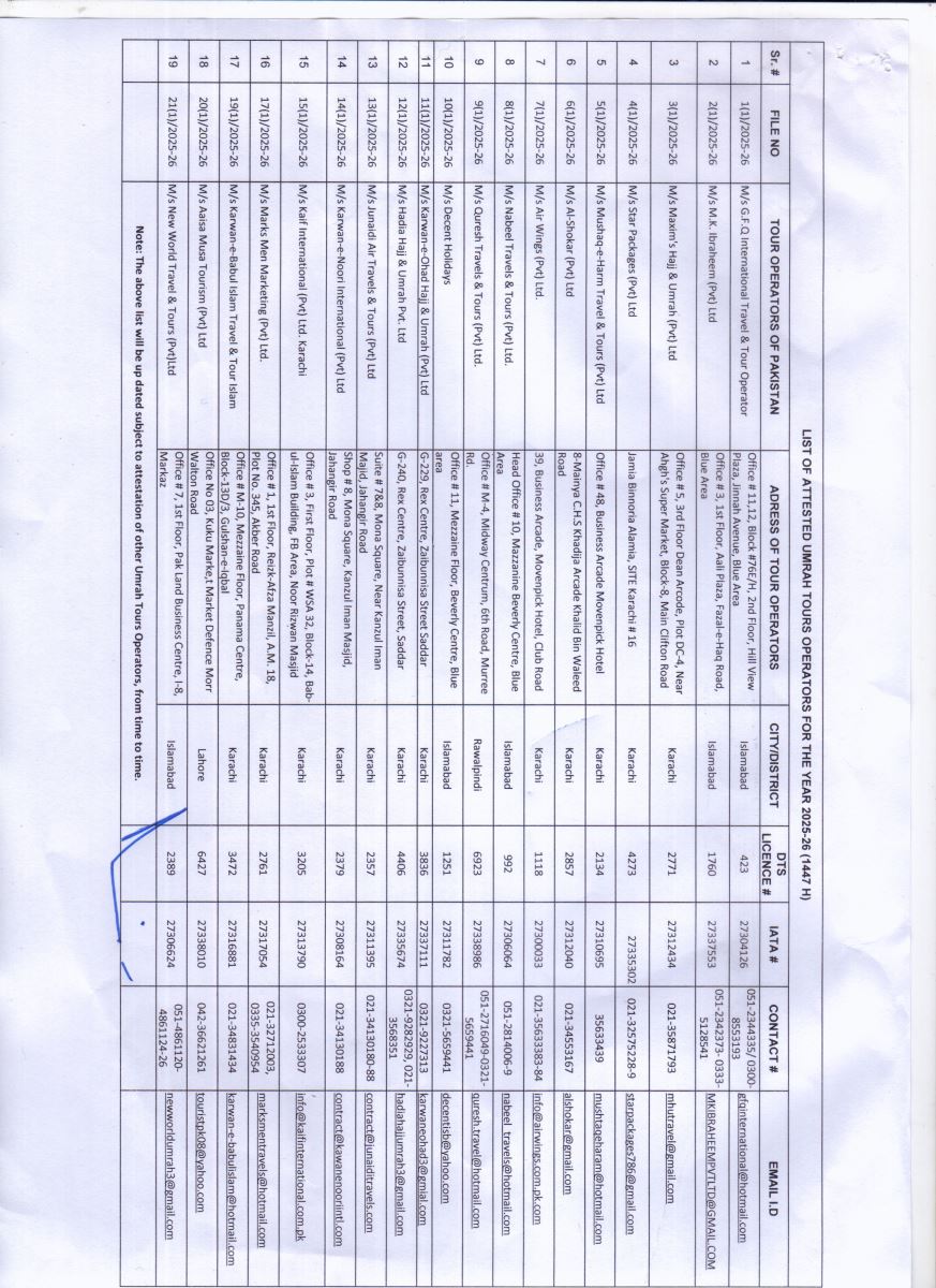 Attestation of Umrah Contract Document For Year 2025-26 (1447 H) |