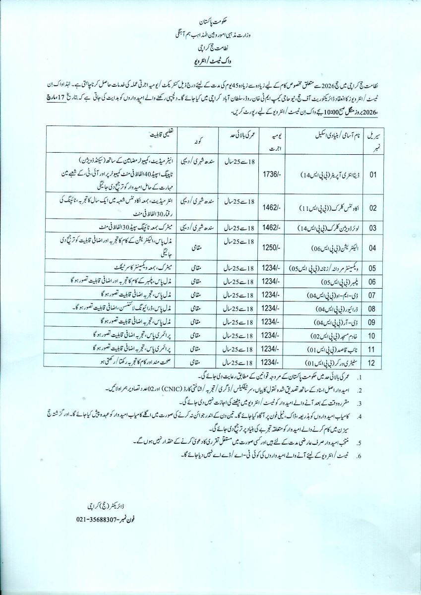 Jobs at Directorate of Hajj, Karachi