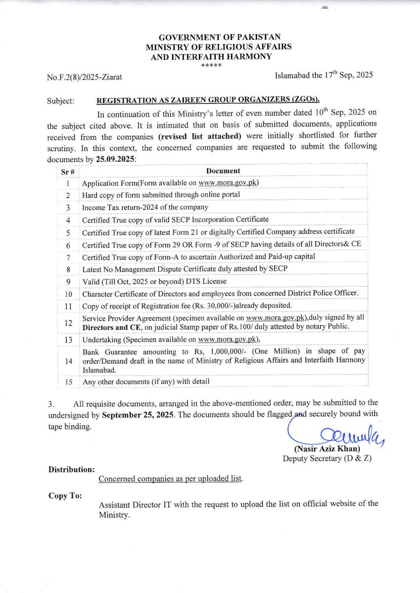 Registration as Zaireen Group Organizers (ZGOs) [List 308+20 Companies] (Revised)