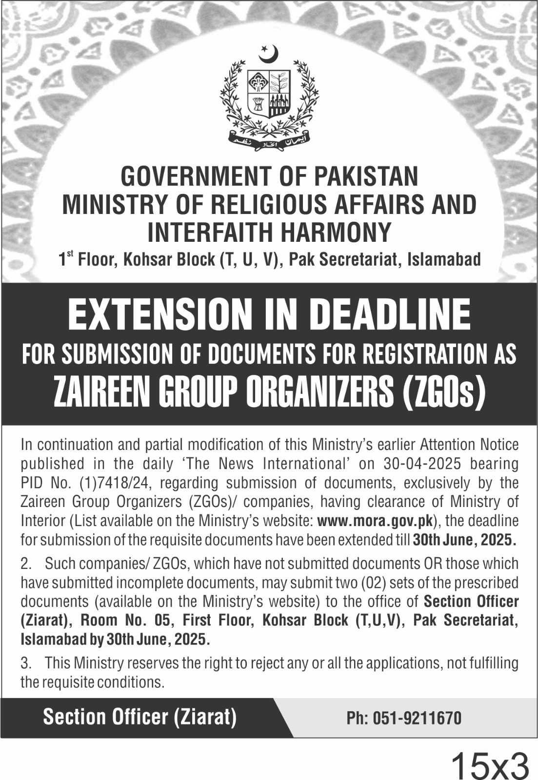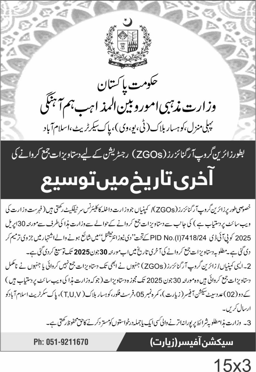 EXTENSION IN DEADLINE AS ZAIREEN GROUP ORGANIZERS (ZGOs)