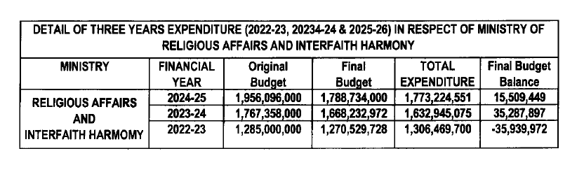 | DETAIL OF ALLOCATED BUDGET , EXPENDITURE AND BALANCE IN RESPECT OF MINISTRY OF RELIGIOUS AFFAIRS AND INTERFAITH HARMONY CFY 2025-26 Amounts in Pak.Rs. |